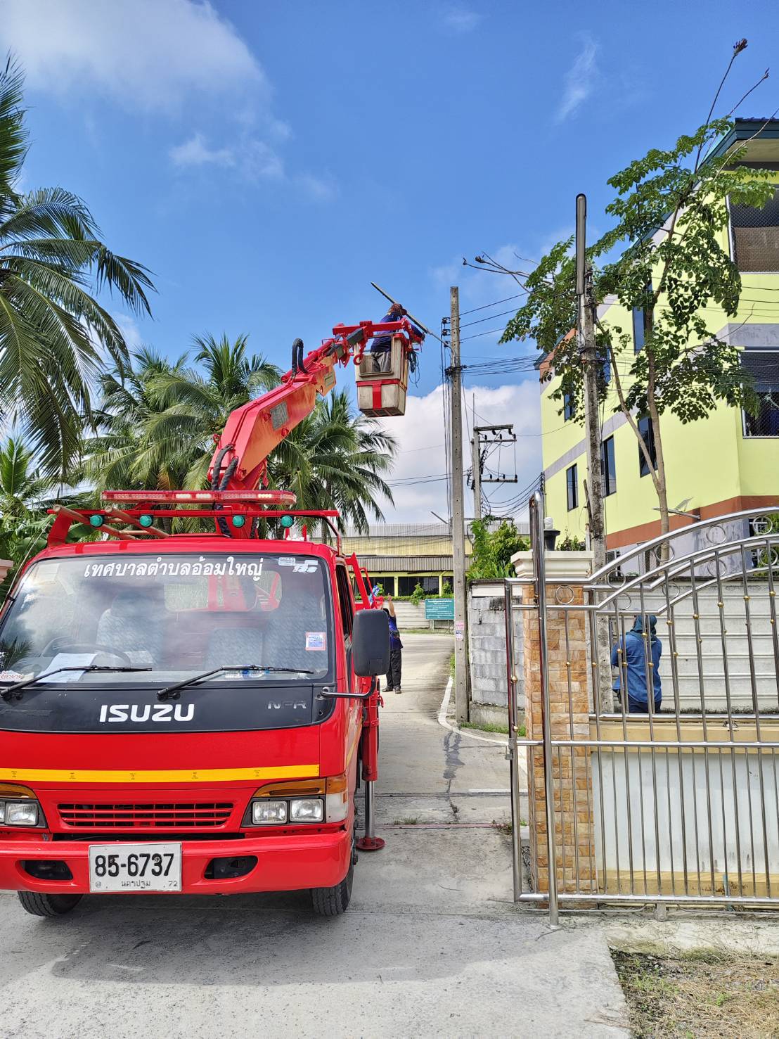 วันพฤหัสบดีที่ 16 ตุลาคม 2568 นางสาวสมใจรัก คุ้มถนอม นายกเทศมนตรีตำบลอ้อมใหญ่ สั่งการให้เจ้าหน้าที่กองช่าง ให้ดำเนินการแก้ไขหลอดไฟที่เสีย ตามที่มีประชาชนร้องเรียน บริเวณซอยสวนส้ม 2