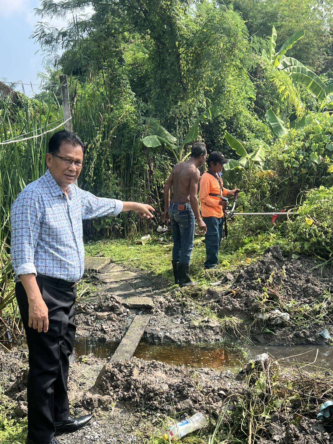 วันอังคารที่ 21 ตุลาคม 2568 นายภาณุพงษ์ คุ้มถนอม รองนายกเทศมนตรี ลงพื้นที่ตรวจสอบกำกับดูแลการปฏิบัติงานของเจ้าหน้าที่กองช่าง เพื่อทำการขุดลอกลำรางให้น้ำมีการไหลระบายได้สะดวก ช่วยเหลือประชาชนน้ำท่วมขังในพื้นที่สวน หมู่ที่ 6 ตำบลอ้อมใหญ่