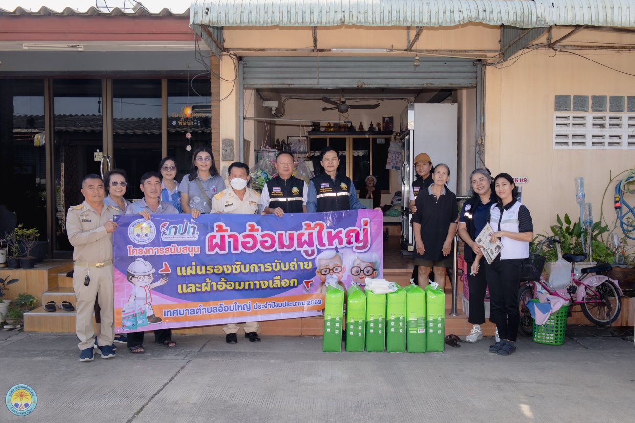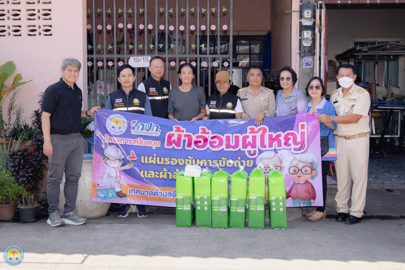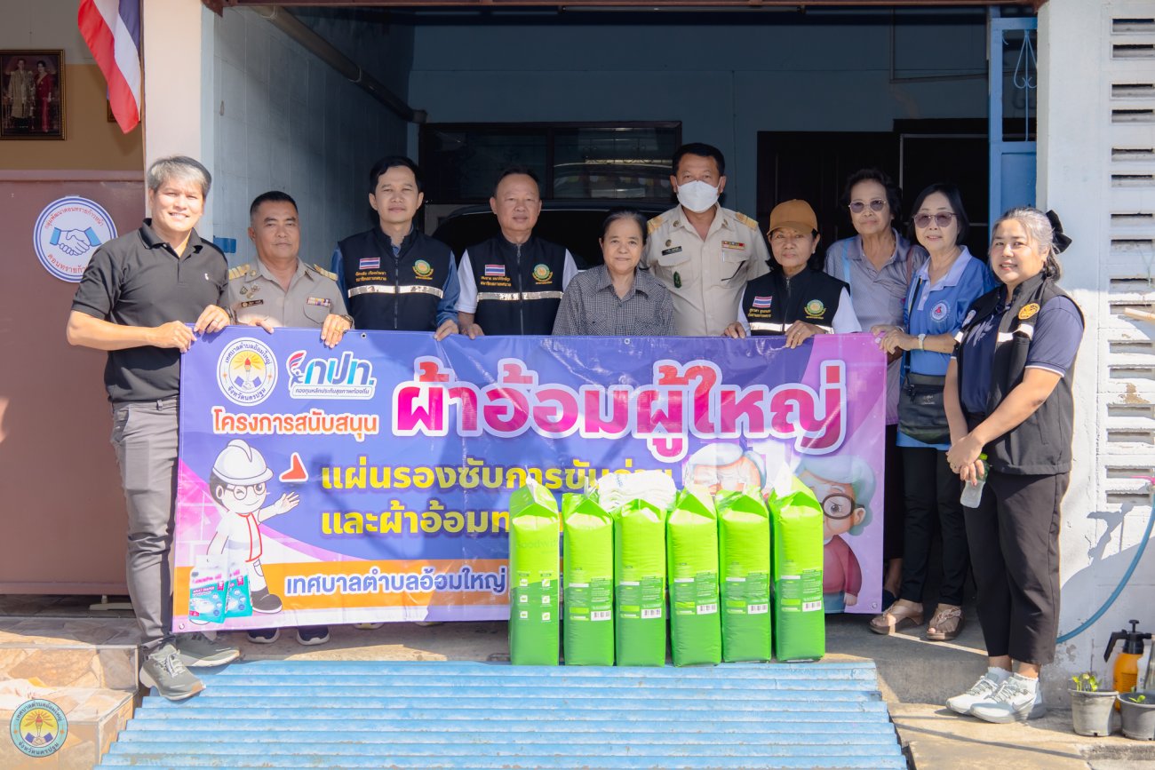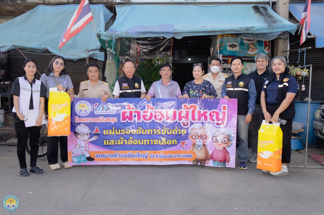 นางสาวสมใจรัก คุ้มถนอม นายกเทศมนตรีตำบลอ้อมใหญ่ นำทีมคณะผู้บริหาร สมาชิกสภาเทศบาล และหัวหน้าส่วนราชการ ลงพื้นที่เพื่อดำเนินงานตาม "โครงการสนับสนุนผ้าอ้อมผู้ใหญ่สำหรับบุคคลที่มีภาวะพึ่งพิง และบุคคลที่มีภาวะปัญหาการกลั้นปัสสาวะหรืออุจจาระไม่ได้"