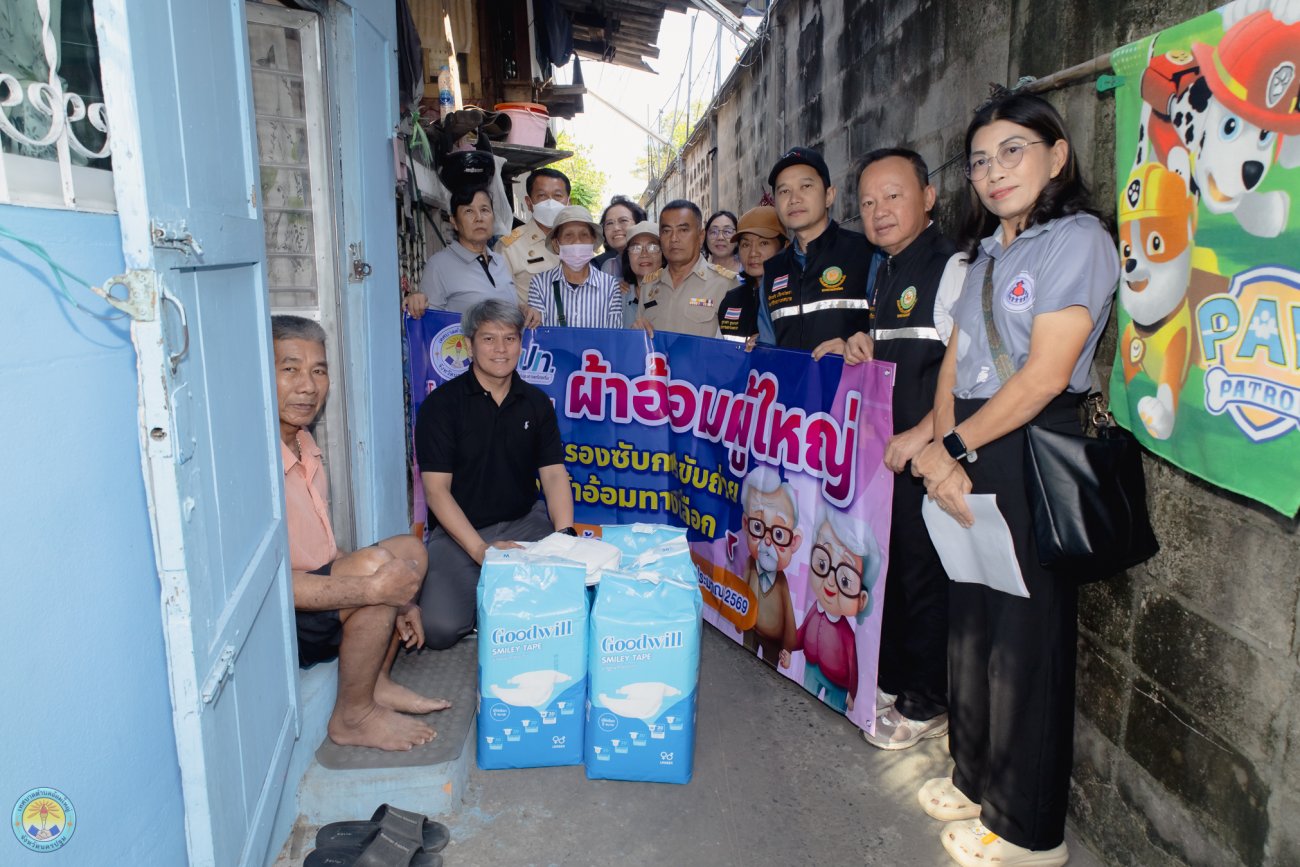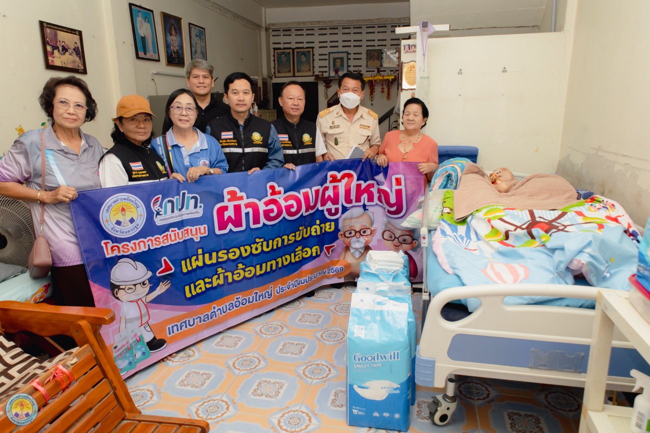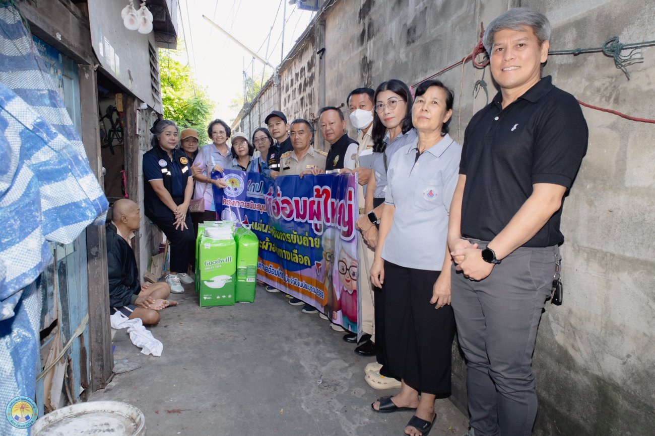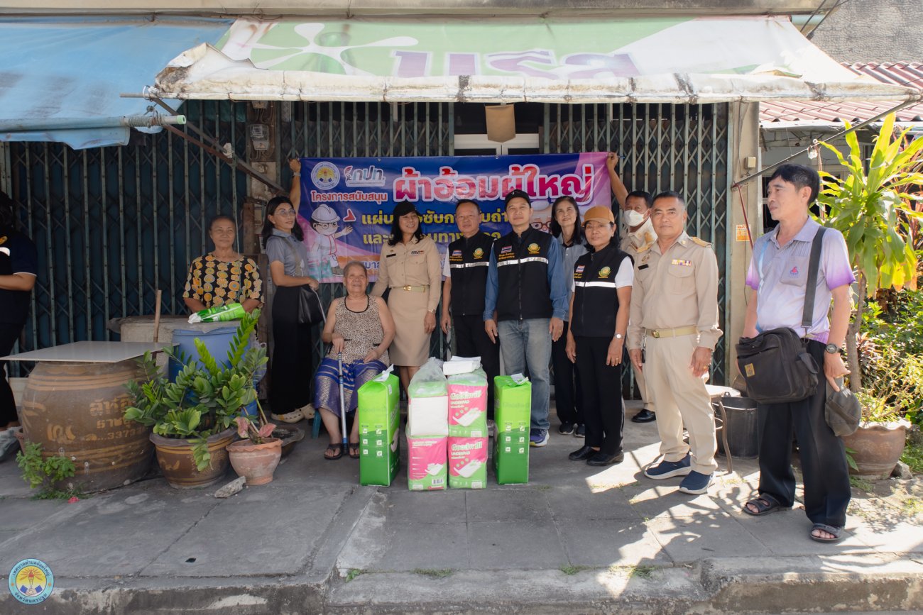 นางสาวสมใจรัก คุ้มถนอม นายกเทศมนตรีตำบลอ้อมใหญ่ นำทีมคณะผู้บริหาร สมาชิกสภาเทศบาล และหัวหน้าส่วนราชการ ลงพื้นที่เพื่อดำเนินงานตาม "โครงการสนับสนุนผ้าอ้อมผู้ใหญ่สำหรับบุคคลที่มีภาวะพึ่งพิง และบุคคลที่มีภาวะปัญหาการกลั้นปัสสาวะหรืออุจจาระไม่ได้"