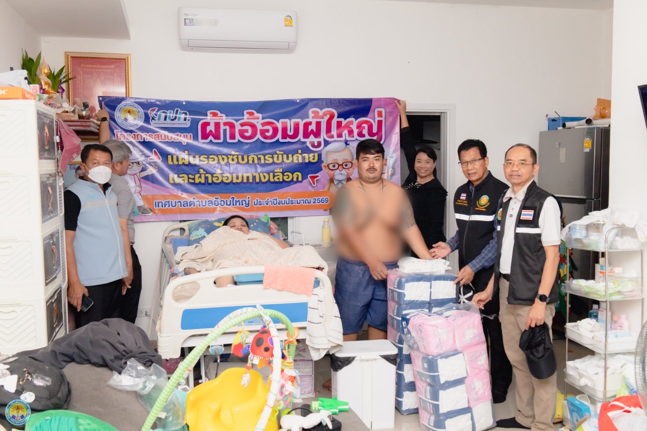 นางสาวสมใจรัก คุ้มถนอม นายกเทศมนตรีตำบลอ้อมใหญ่ มอบหมายให้นายภาณุพงษ์ คุ้มถนอม รองนายกเทศมนตรี พร้อมด้วยนางสุขวสา ชุนถนอม ประธานสภาเทศบาล นางพรรณศิริ ชุนถนอม สมาชิกสภาเทศบาล นาย อนันตชัย นาระถี ปลัดเทศบาล และนายเอกชัย รอดภิรมย์ ผู้อำนวยการกองสาธารณสุขและสิ่งแวดล้อม ลงพื้นที่เพื่อดำเนินงานตาม "โครงการสนับสนุนผ้าอ้อมผู้ใหญ่สำหรับบุคคลที่มีภาวะพึ่งพิง และบุคคลที่มีภาวะปัญหาการกลั้นปัสสาวะหรืออุจจาระไม่ได้" (วันที่ 2 ) ในการนี้ ได้รับความร่วมมือจากเจ้าหน้าที่กองสาธารณสุขและสิ่งแวดล้อม พร้อมด้วยกลุ่ม อสม. ตำบลอ้อมใหญ่ ร่วมลงพื้นที่มอบสิ่งของให้แก่ประชาชนกลุ่มเป้าหมาย เพื่อช่วยลดภาระค่าใช้จ่ายในครัวเรือนและส่งเสริมสุขอนามัยที่ดี