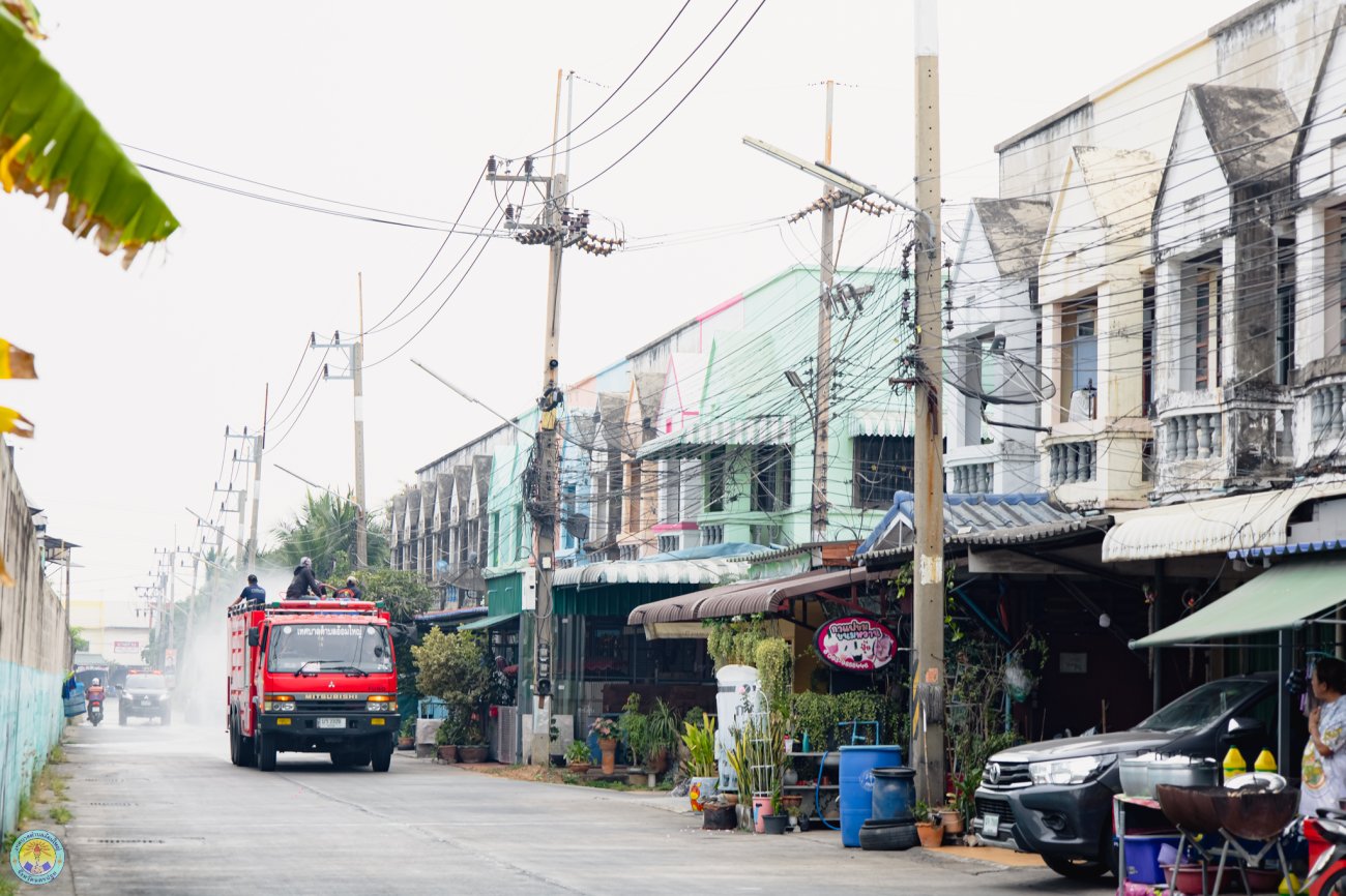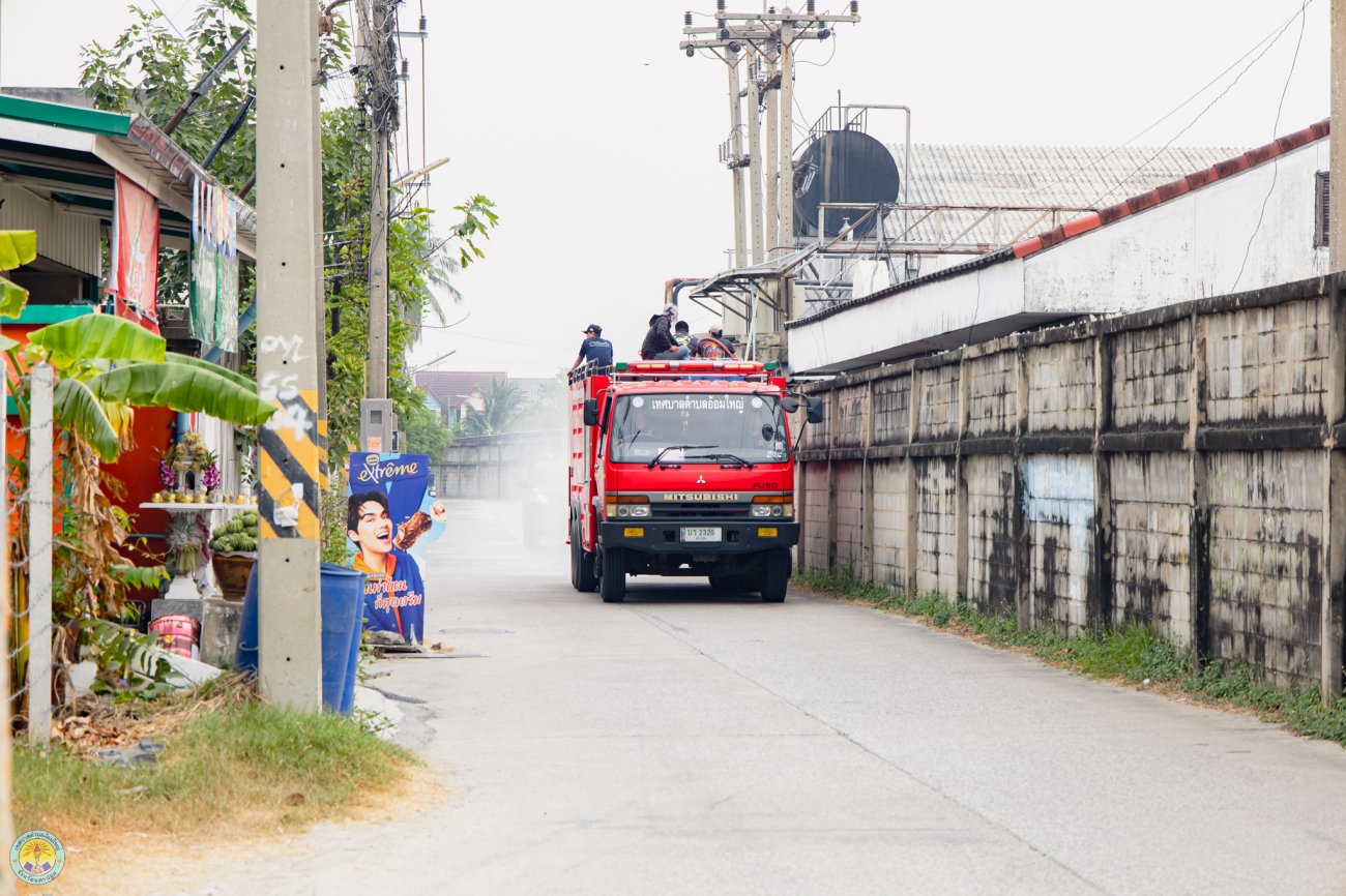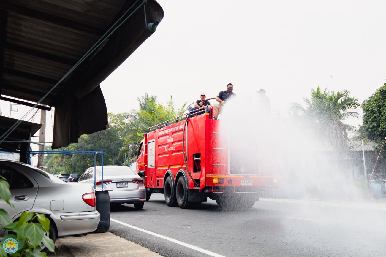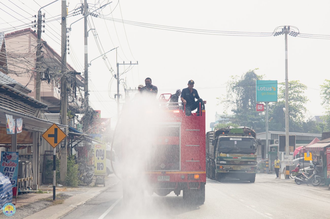 นางสาวสมใจรัก คุ้มถนอม นายกเทศมนตรีตำบลอ้อมใหญ่ มอบหมายให้เจ้าหน้าที่งานป้องกันและบรรเทาสาธารณภัย สำนักปลัดเทศบาล ดำเนินการฉีดพรมละอองน้ำบริเวณ บริเวณสามแยกบ้านคลองลัด จุดเริ่มต้นหน้าเซเว่นตลอดแนว หมู่บ้านสวนประดู่ไปถึงหน้าโรงงานเส้นหมี่ เพื่อเป็นการลดปัญหาฝุ่น PM 2.5