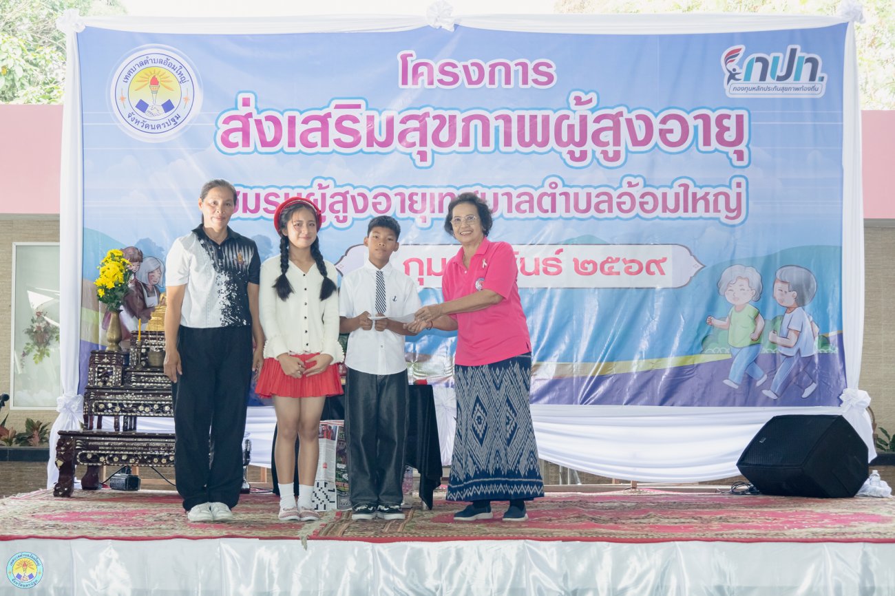 วันอาทิตย์ที่ ๑ กุมภาพันธ์ ๒๕๖๙ นางสาวสมใจรัก คุ้มถนอม นายกเทศมนตรีตำบลอ้อมใหญ่ เป็นประธานเปิด “ โครงการส่งเสริมสุขภาพผู้สูงอายุ ชมรมผู้สูงอายุเทศบาลตำบลอ้อมใหญ่ ประจำปีงบประมาณ พ.ศ. ๒๕๖๙ โดยงบประมาณสนับสนุนจากกองทุนหลักประกันสุขภาพท้องถิ่น เทศบาลตำบลอ้อมใหญ่ “ พร้อมด้วย คณะผู้บริหารเทศบาล สมาชิกสภาเทศบาล หัวหน้าส่วนราชการ และได้รับความอนุเคราะห์คณะวิทยากรจากโรงพยาบาลส่งเสริมสุขภาพตำบล ตำบลกระทุ่มล้ม มาให้ความรู้ในครั้งนี้ ณ สำนักงานเทศบาลตำบลอ้อมใหญ่