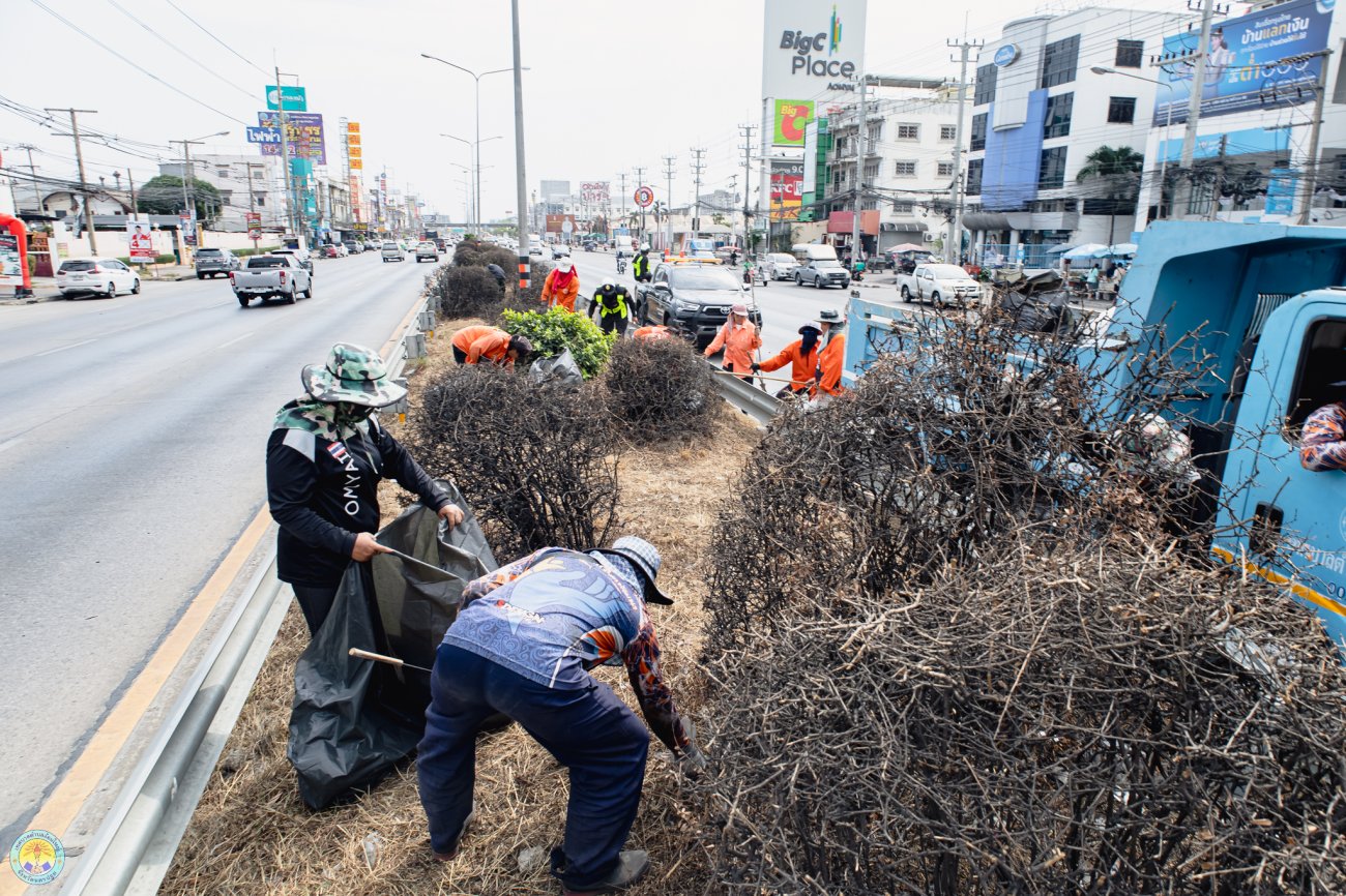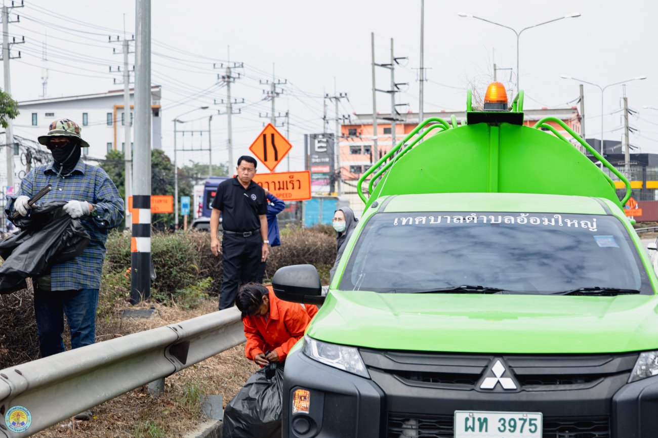 วันอังคารที่ 3 กุมภาพันธ์ 2569 นางสาวสมใจรัก คุ้มถนอม นายกเทศมนตรีตำบลอ้อมใหญ่ มอบหมายให้ นายเอกชัย รอดภิรมย์ ผู้อำนวยการกองสาธารณสุขและสิ่งแวดล้อม นำเจ้าหน้าที่งานรักษาความสะอาด ลงพื้นที่ดำเนินการทำความสะอาด จัดระเบียบ และปรับปรุงภูมิทัศน์บริเวณเกาะกลางถนนในเขตพื้นที่เทศบาล