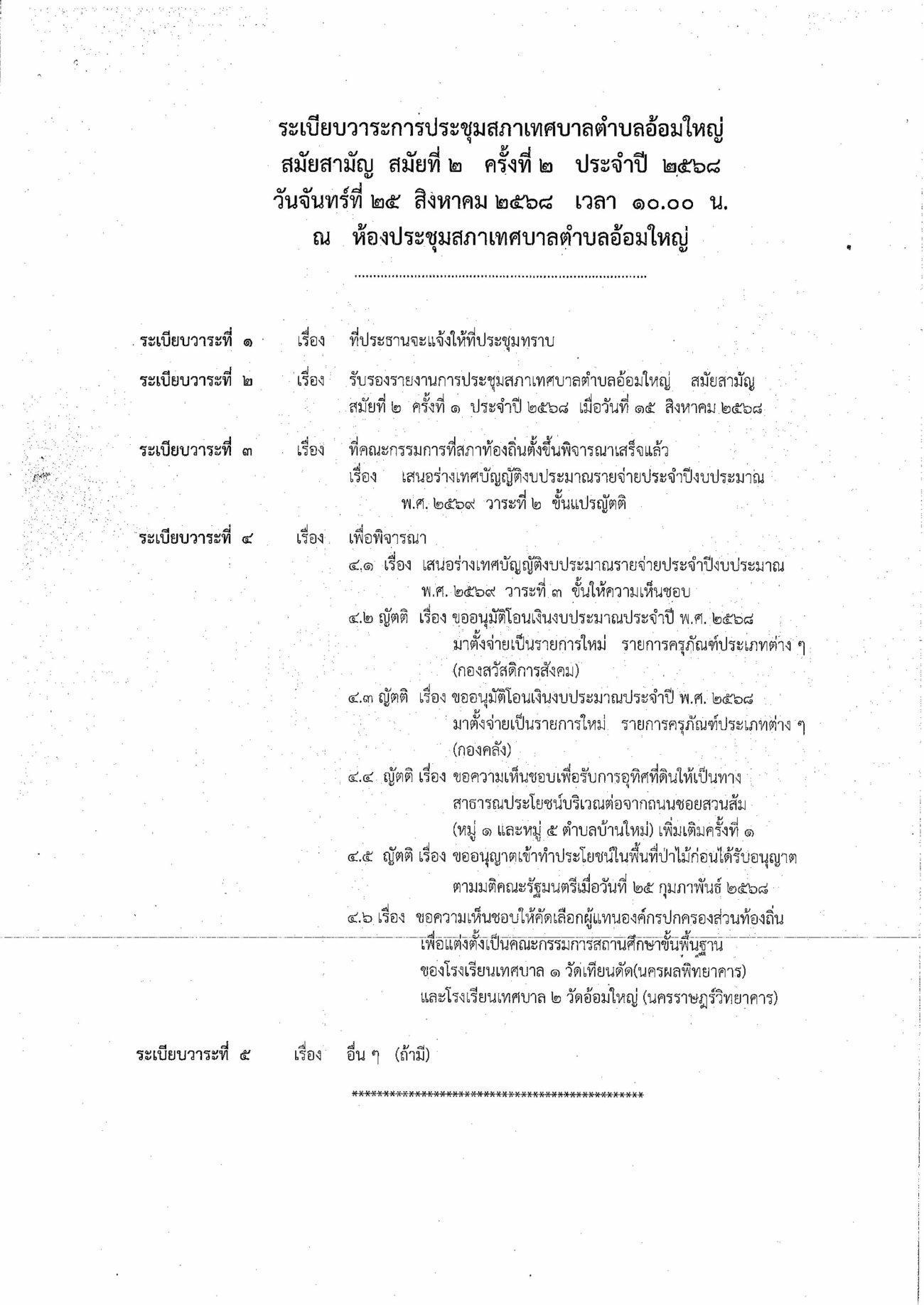 ภาพที่เกี่ยวข้อง กำหนดนัดประชุมสภาเทศบาลตำบลอ้อมใหญ่ สมัยสามัญ สมัยที่ 2 ครั้งที่ 2 ประจำปี 2568 ในวันจันทร์ที่ 25 สิงหาคม 2568 เวลา 10.00 น. ณ ห้องประชุมสภาเทศบาลตำบลอ้อมใหญ่