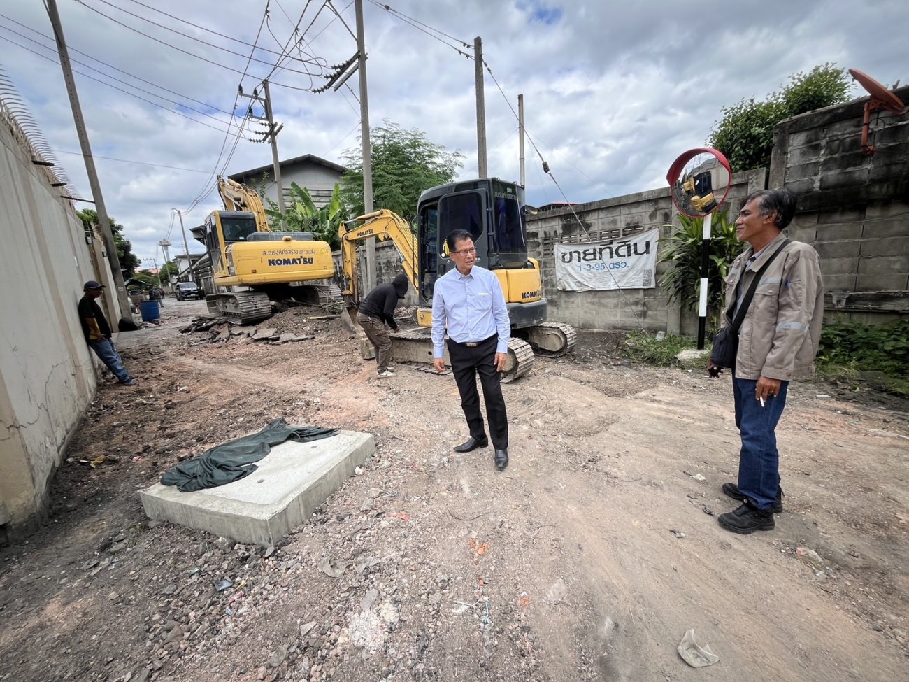 วันพฤหัสบดีที่ 25 กันยายน 2568 นางสาวสมใจรัก คุ้มถนอม นายกเทศมนตรีตำบลอ้อมใหญ่ มอบหมายให้นายภาณุพงษ์ คุ้มถนอม รองนายกเทศมนตรี ลงพื้นที่เพื่อติดตามความคืบหน้าโครงการต่างๆของเทศบาล ณ บริเวณวัดเทียนดัด ,ซอยเทศบาล10(แปะชุน) ,ซอยเทศบาล 8 และซอยเทศบาล 2 ซึ่งเป็นส่วนหนึ่งของการพัฒนาโครงสร้างพื้นฐานเพื่อแก้ปัญหาการจราจรและปัญหาน้ำท่วมขังในพื้นที่ และได้เน้นย้ำถึงความสำคัญของการดำเนินงานให้เป็นไปตามมาตรฐานที่กำหนด เพื่อให้ประชาชนได้รับประโยชน์สูงสุด และจะเร่งรัดให้แล้วเสร็จโดยเร็ว เพื่อบรรเทาความเดือดร้อนของประชาชนในชุมชนดังกล่าว
