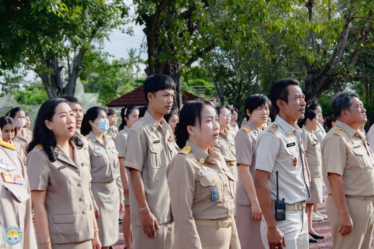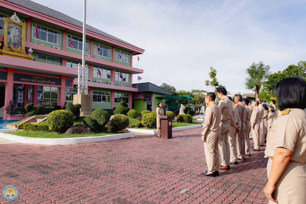 วันจันทร์ที่ 29 กันยายน 2568 นางสาวสมใจรัก คุ้มถนอม นายกเทศมนตรีตำบลอ้อมใหญ่ พร้อมด้วยคณะผู้บริหารเทศบาล หัวหน้าส่วนราชการ นำข้าราชการ พนักงาน ลูกจ้างเทศบาลตำบลอ้อมใหญ่ ร่วมเคารพธงชาติและร้องเพลงชาติ เนื่องในวันพระราชทานธงชาติไทย เพื่อน้อมรำลึกถึงพระมหากรุณาธิคุณพระบาทสมเด็จพระมงกุฎเกล้าเจ้าอยู่หัว รัชกาลที่ 6 ที่ทรงพระราชทานธงไตรรงค์เป็นธงชาติไทย ณ สำนักงานเทศบาลตำบลอ้อมใหญ่