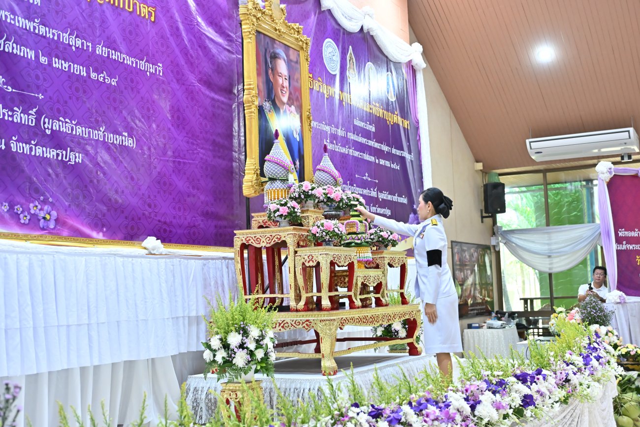 วันพฤหัสบดีที่ 2 เมษายน 2569 ณ ศูนย์ฝึกอบรมโรงเรียนนาคประสิทธิ์ (มูลนิธิวัดบางช้างเหนือ) อำเภอสามพราน จังหวัดนครปฐม นางสาวอโรชา นันทมนตรี ผู้ว่าราชการจังหวัดนครปฐม พร้อมด้วย รองผู้ว่าราชการจังหวัด หัวหน้าส่วนราชการ ข้าราชการและเจ้าหน้าที่จากหน่วยงานต่างๆ ตลอดจนนักเรียน นักศึกษาและประชาชน ร่วมพิธีเจริญพระพุทธมนต์ และทำบุญตักบาตรข้าวสาร อาหารแห้งแด่พระสงฆ์ โดยมีพระราชวชิรสุตาภรณ์ เจ้าคณะจังหวัดนครปฐม เจ้าอาวาสวัดบางช้างเหนือ นำคณะสงฆ์ พร้อมทั้งสามเณร ที่เข้าร่วมโครงการบรรพชาเฉลิมพระเกียรติฯ ออกรับบิณฑบาต เพื่อเฉลิมพระเกียรติและถวายเป็นพระราชกุศลแด่ สมเด็จพระกนิษฐาธิราชเจ้า กรมสมเด็จเทพรัตนราชสุดาฯ สยามบรมราชกุมารี เนื่องในวันคล้ายวันพระราชสมภพ 2 เมษายน 2569 อีกทั้งเพื่อแสดงออกถึงความจงรักภักดี และสำนึกในพระมหากรุณาธิคุณ ที่พระองค์ทรงมีต่อพสกนิกรชาวไทยทั่วทุกหมู่เหล่า ตลอดจนเป็นการเทิดทูนสถาบันพระมหากษัตริย์ ซึ่งเป็นศูนย์รวมจิตใจของคนไทยทั้งชาติ โดยมีนายเกรียงศักดิ์ พริ้งรักษา รองนายกเทศมนตรีตำบลอ้อมใหญ่ ได้นำคณะครูในสังกัดเทศบาลตำบลอ้อมใหญ่เข้าร่วมในครั้งนี้